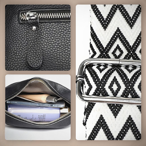 - Comfort con personalità: La tracolla larga e decorata aggiunge un tocco moderno e garantisce una portabilità comoda, sia a spalla che crossbody.