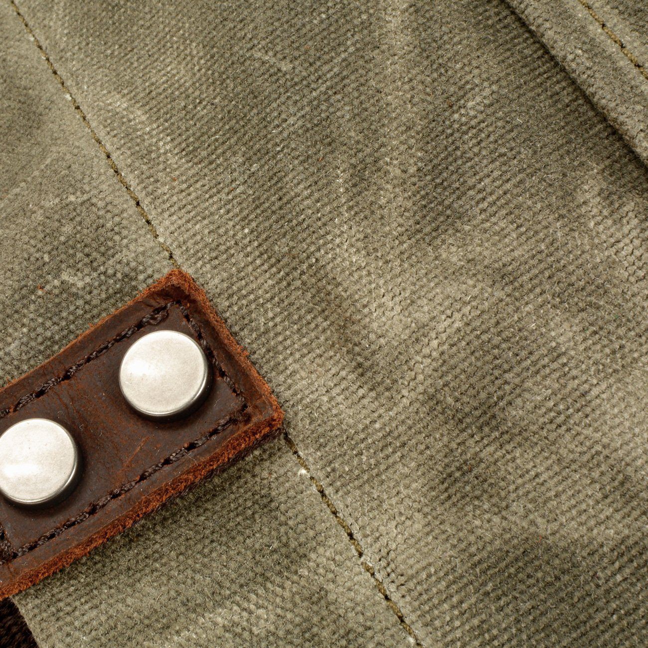🌿 Materiali resistenti: Realizzata in canvas di cotone cerato e pelle pieno fiore, noti per la loro traspirabilità e resistenza all’acqua.