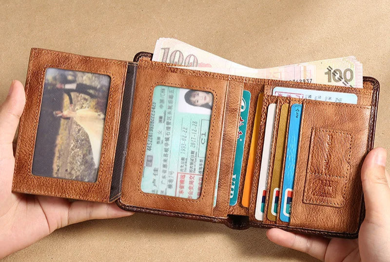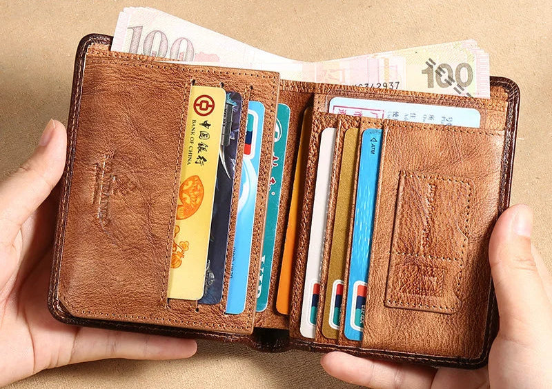 Portafoglio in pelle vintage per uomo - Porta carte e documenti compatti